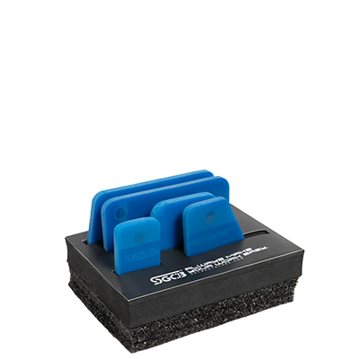 Фетровые накладки защищают поверхность плёнки от царапин при разглаживании ракелем. Используются, когда необходимо избегать контакта жёсткого ракеля с лицевой стороной материала, например, на финишных этапах разглаживания.
