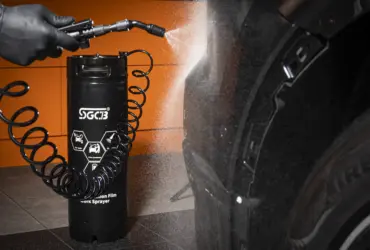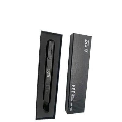 Один из незаменимых инструментов при работе с PPF — распылитель. Он равномерно наносит мыльный раствор на кузов, что обеспечивает идеальное скольжение плёнки и уменьшает риск образования заломов и пузырей.