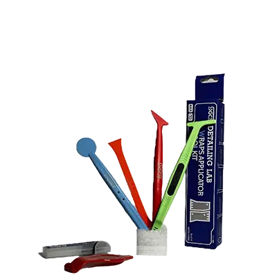 В арсенале мастера должны быть ракели разной жесткости, фетровые накладки, ножи с отламывающимся лезвием, спрей для монтажа защитной пленки. Рассмотрим более детально особенности их применения.