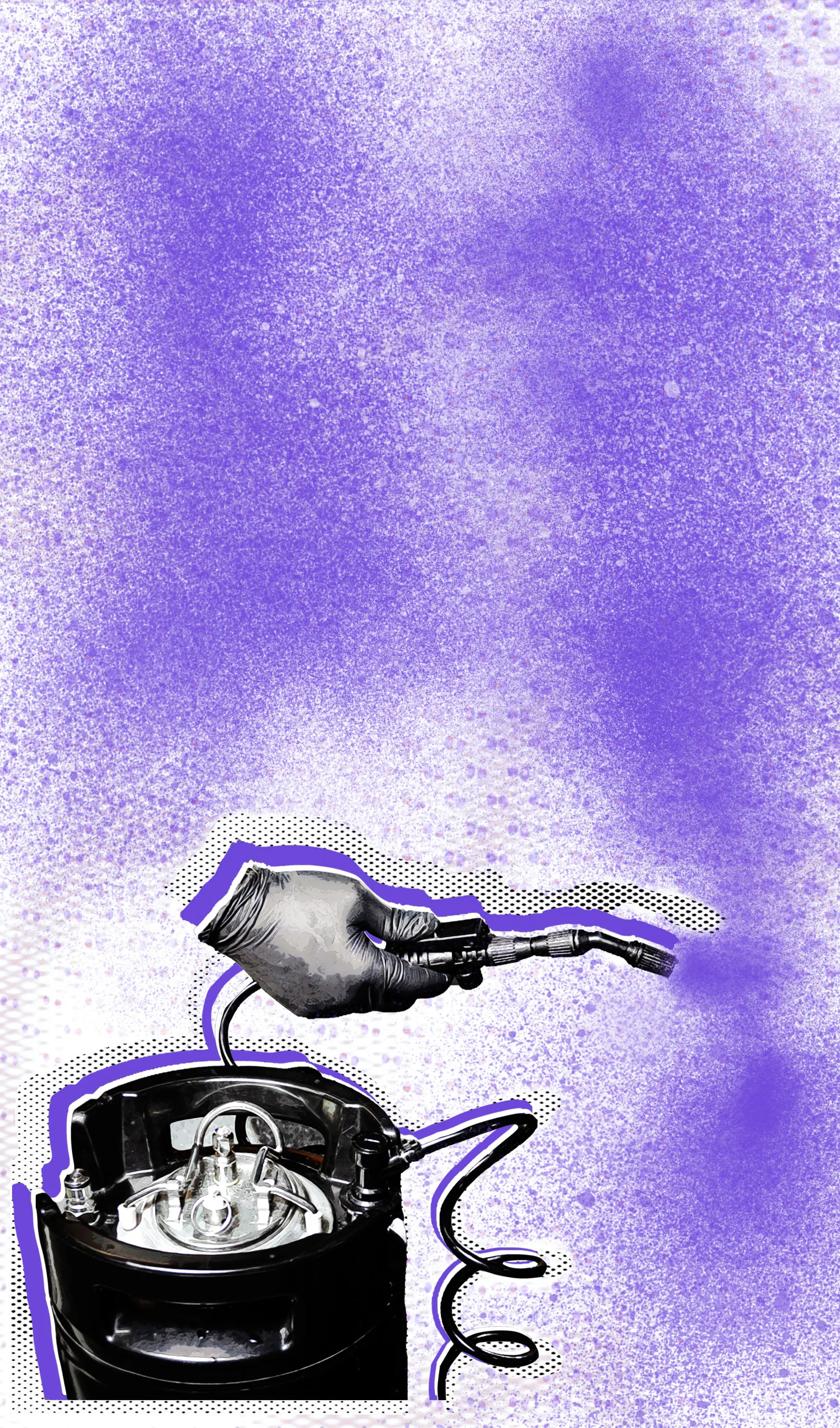 Влажный воздух — залог качественной оклейки. Генератор тумана или холодного пара помогает осаждать пыль в помещении, не давая ей попадать на кузов и под плёнку. Это важно, потому что даже самые мелкие частицы пыли могут ухудшить прилипание плёнки.