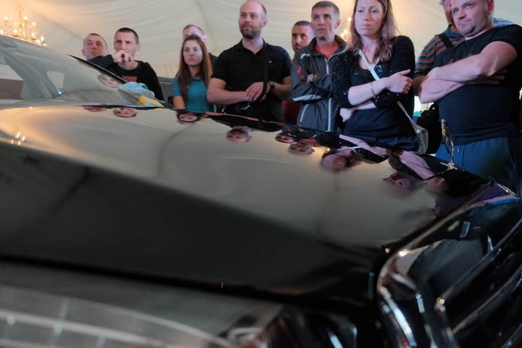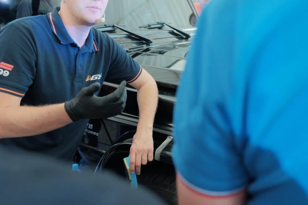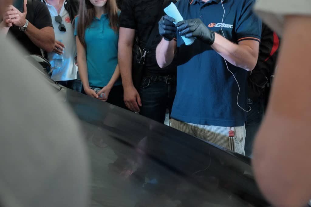 Знакомство с компанией мы начали с вводной лекции. Мы рассказали о производстве, ключевых исторических продуктах и последних разработках. Также мы рассказали о специфике японского рынка автохимии и о том, почему мы работаем с Японией, а не Европой или США. Закончился доклад рассказом о профессиональных линейках автокосметики SOFT99 и презентацией бизнес-модели авторизованных студий детейлинга под брендами G’zox, Beauty Car Garage и Prospec.