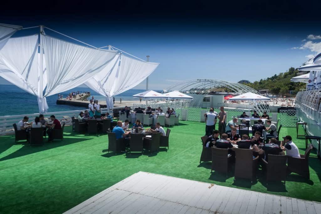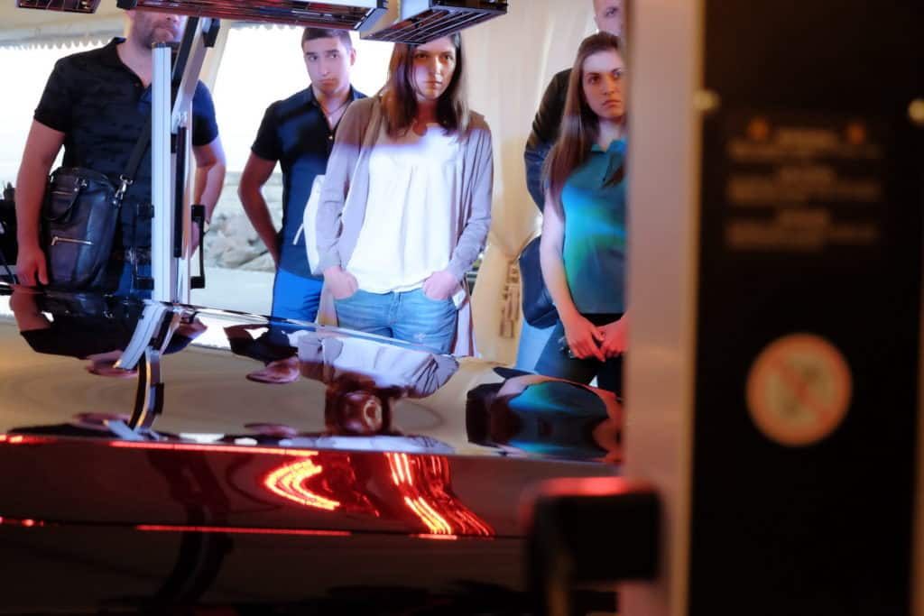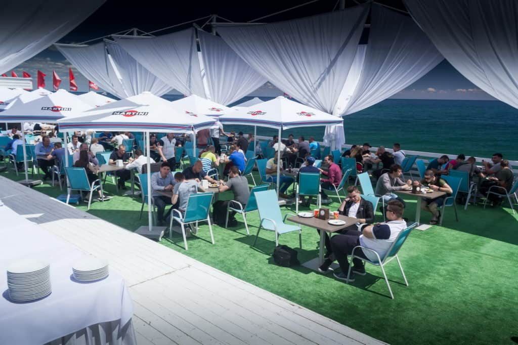 Мероприятие прошло возле самого моря в Maristella Marine Residence. На улице было жарко, но шатёр давал тень и прохладу. Под шатром расположилась сцена с экраном, места для зрителей, стенды с продукцией, а также выставочные автомобили для практических занятий.