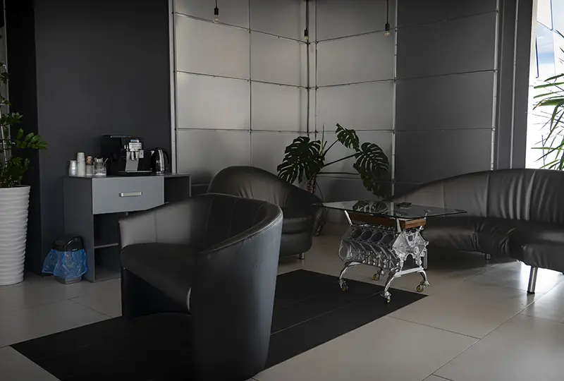 Поки автомобіль обслуговується, у клієнта є можливість провести час у комфортній зоні відпочинку, де можна пригоститися смачною кавою, відпочити на м’яких диванах, подивитися телевізор і вибрати новий аромат у салон автомобіля.