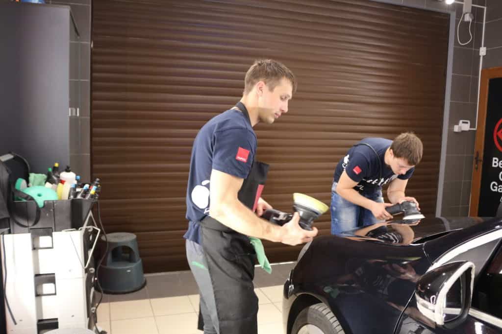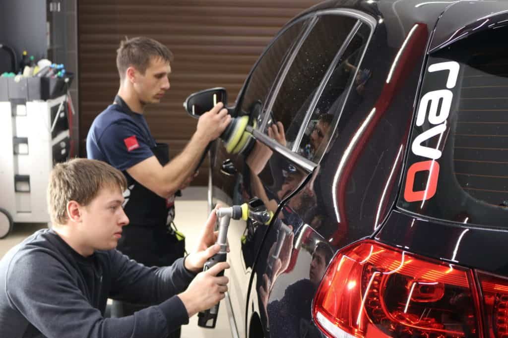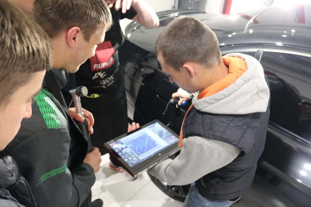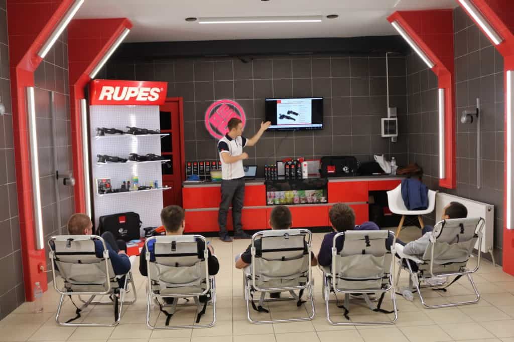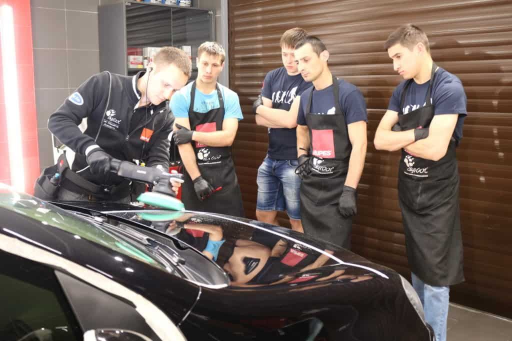 Щоб дізнатися подробиці навчальної програми та записатися на наступний курс, телефонуйте за номером 093 170 66 24 або надішліть заявку і ми з вами зв’яжемося. ЗаписатисяПрактична частина починається з демонстрації роботи полірувальної техніки: поводження з технікою, правильний натиск і рухи, поєднання кіл і паст, особливості лакофарбових покриттів. Після цього студенти беруть до рук машинки і під керівництвом викладача полірують два автомобілі з різними дефектами ЛФП. Студенти встигають працюють з усією лінійкою техніки RUPES, необхідної в сучасній студії детейлінгу.