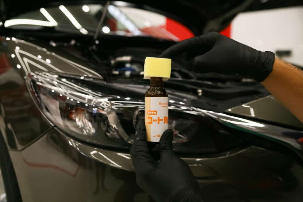 У комплекті з очищувачем також йде захисний склад, який перешкоджає утворенню жовтого нальоту. Нанесіть кілька крапель на аплікатор, що додається, і розподіліть склад по поверхні фари.