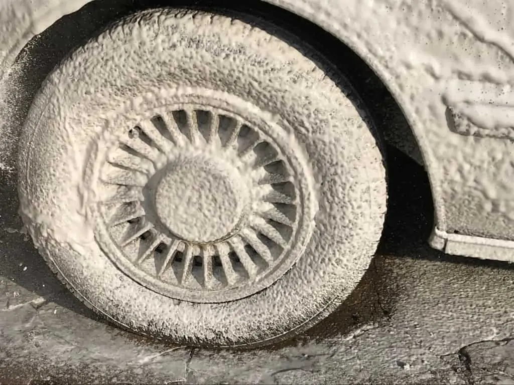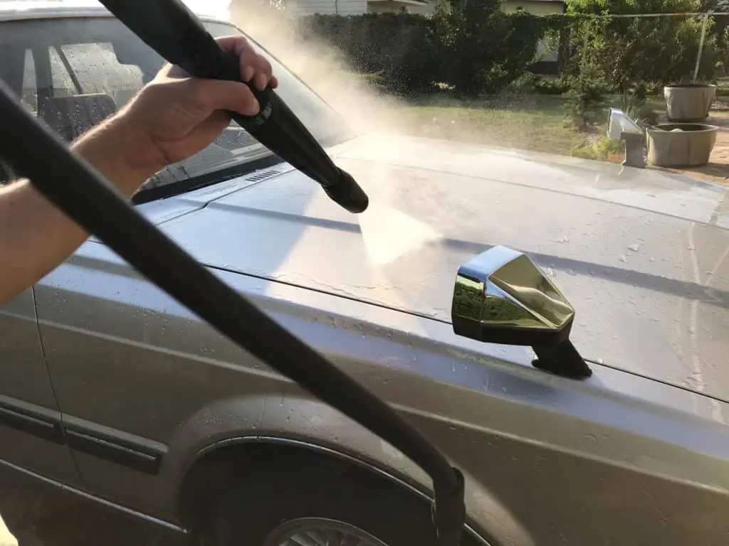 Нанесіть піну для безконтактної мийки, починаючи з переднього крила і закінчуючи фарами. Зачекайте 4 хвилини (влітку 2) і змийте струменем з АВТ знизу вгору. Рухайтеся в тому ж порядку, в якому наносили піну, але починаючи з фар. Важливо зменшити вплив піни на фари, щоб вони не жовтіли.