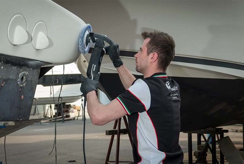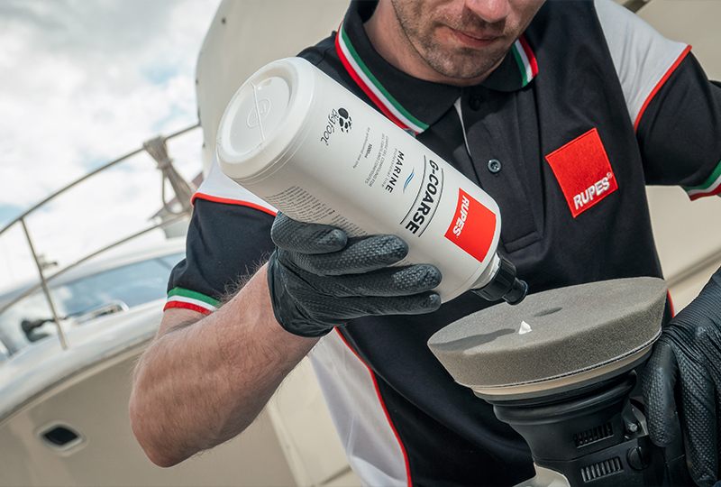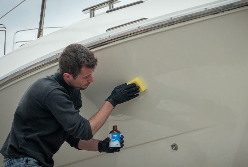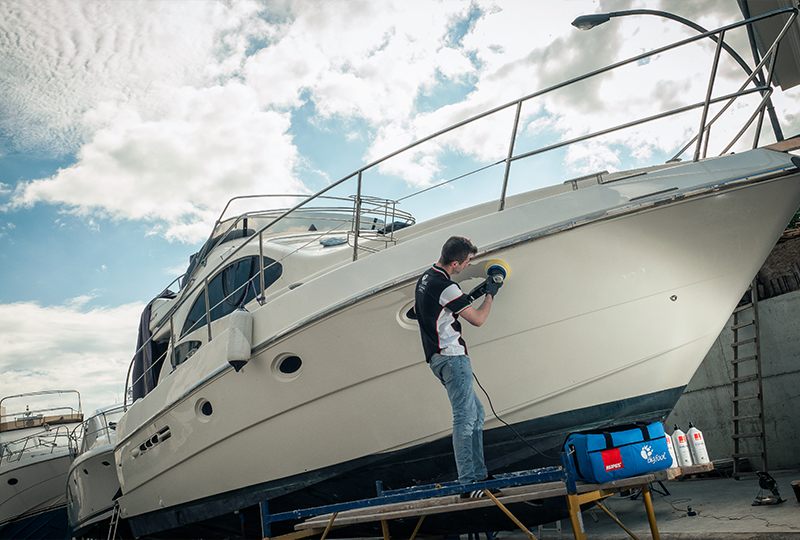 Для изготовления корпуса современных яхт используют композитный материал — стеклопластик. Сверху его покрывают слоем декоративно-защитного состава, который называется гелькоут. Работать с таким покрытием гораздо сложнее, чем с тем же автомобильным ЛКП. Но у профессиональных детейлеров для этого есть необходимое оборудование, а главное — опыт.