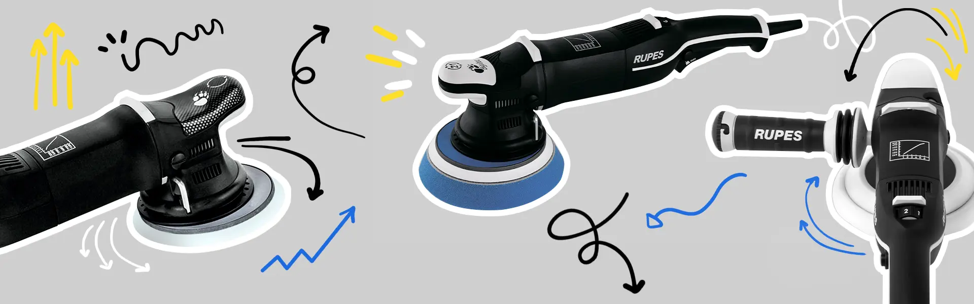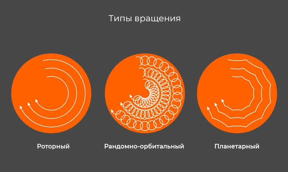 Полировальные устройства RUPES бывают трех типов вращения: роторные, рандомно-орбитальные и планетарные.