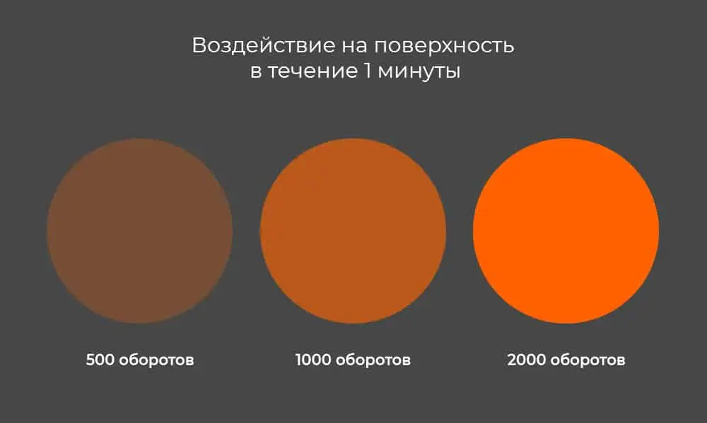 За один подход можно полировать площадь, равную шести полировальным кругамТипы вращения
