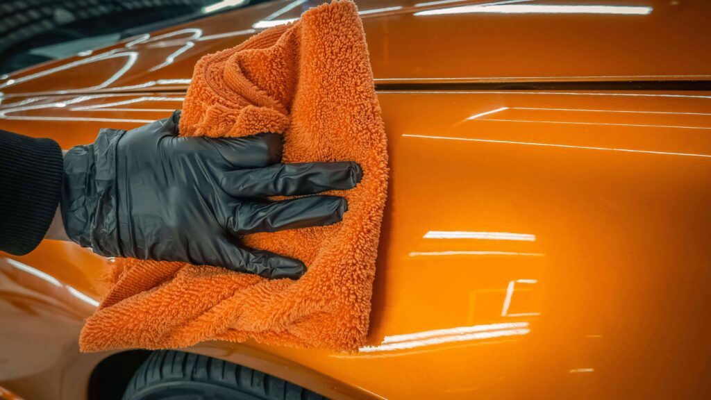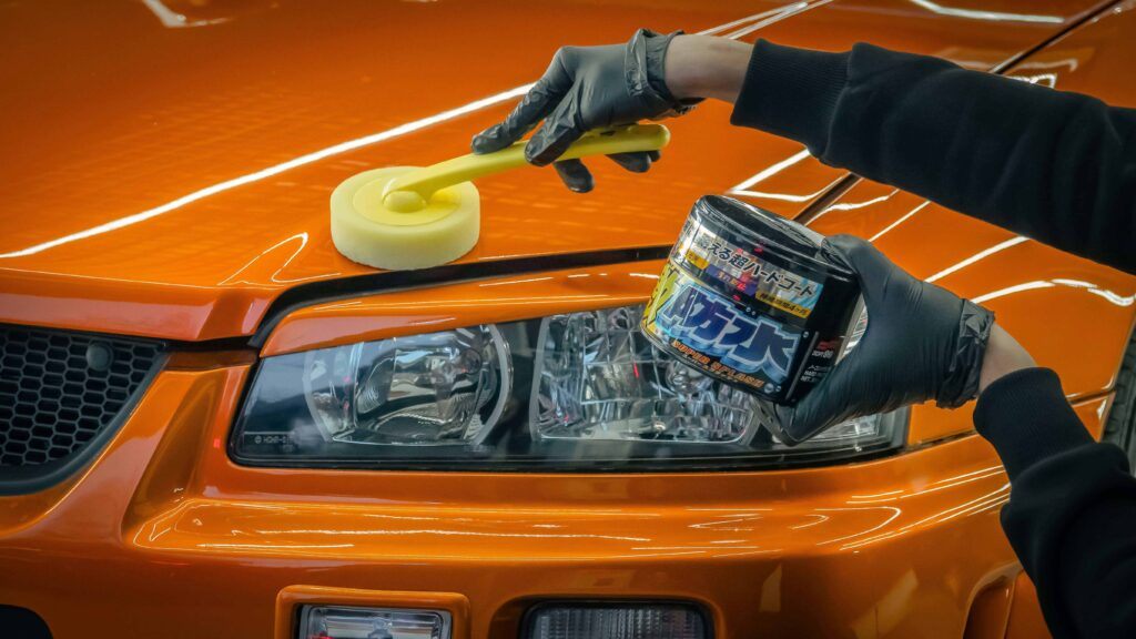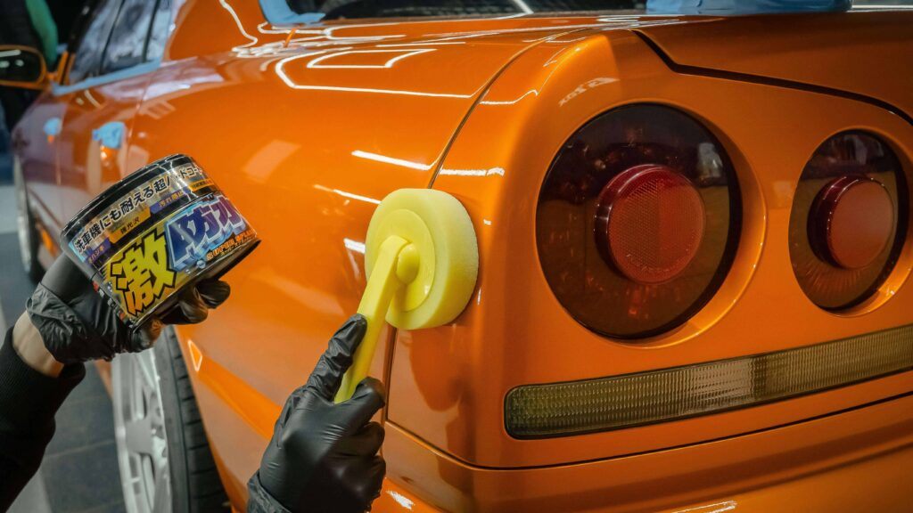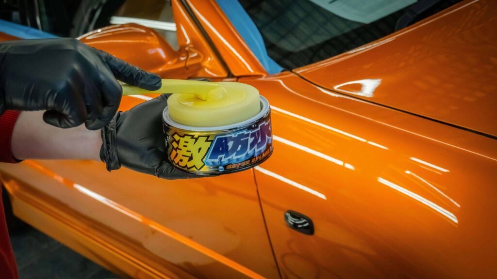 Наносить воск сложнее, чем защитные агенты. Понадобится тёплое, хорошо освещенное помещение и определённая сноровка. Чистый автомобиль нужно высушить, равномерно нанести воск, подождать от 2 до 7 минут и располировать микрофибровым полотенцем. Восковый слой должен быть тонким, иначе на лакокрасочном покрытии останутся пигментные пятна.