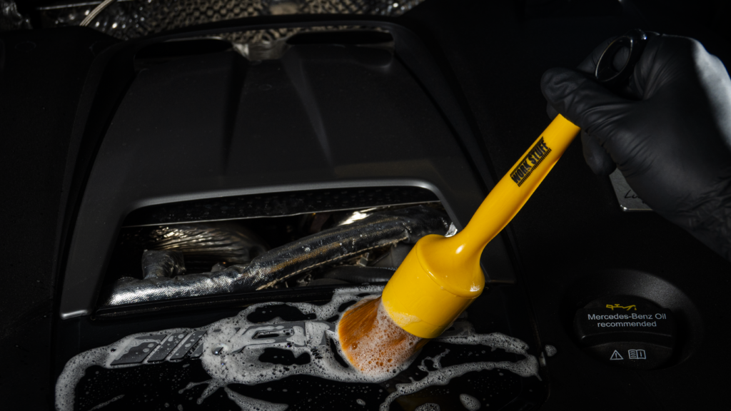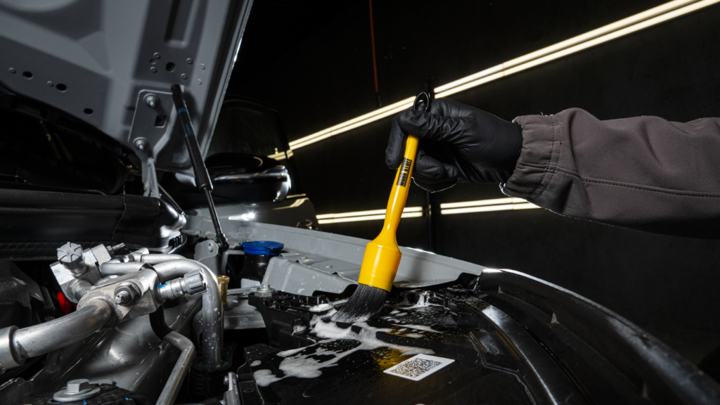 - Кисть с жёстким ворсом для устранения стойких загрязнений в моторном отсеке