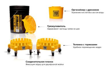 Каждое ведро оснащено разметкой объёма, облегчающей точное разведение автошампуня. А разные цветовые варианты помогают не перепутать вёдра для шампуня и чистой воды, что ещё больше снижает риск появления дефектов на поверхности автомобиля.